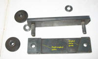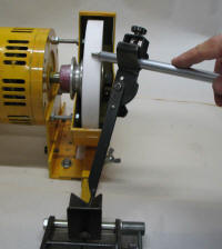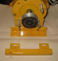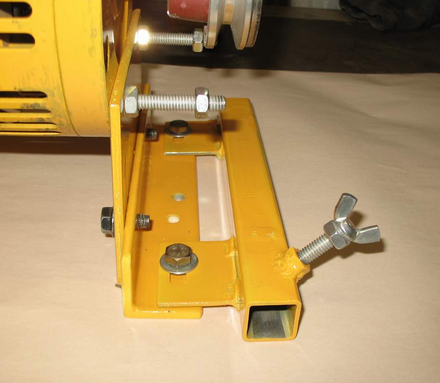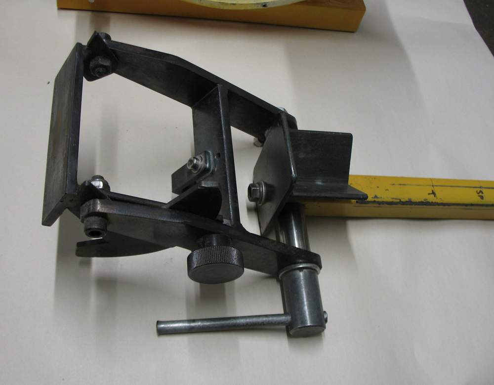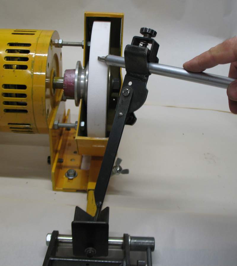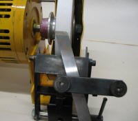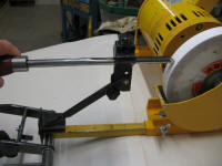 The 25mm RHS mounting tube for the jig is bolted directly to the motor mount through slotted holes for wear adjustment. This arrangement gives greater precision than having the jig bolted to a bench separately to the grinder and keeps the complete unit portable. |