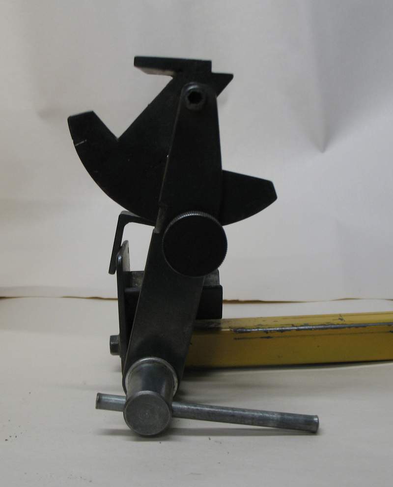 The final component is the depth gauge for setting the amount of chisel blade protruding from the jigs - a bit rough but fully functional.Once I have ground a tool to a shape I'm happy with, it's just a matter of marking the angle on the jig or toolrest and setting a depth stop etc so that it's a breeze to touch up the same grind in seconds. |
