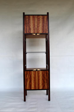 This project was also my first shot at hand-cut dovetails and inlaying veneer - and as long as you don't count the two drawer sides I trashed in the process, it worked out pretty well I thought!! |