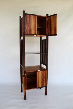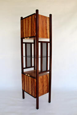 A box made from Rose Mahogany (NSW Rosewood) with a River Oak burl lid insert and the tray and trimmings from Norfolk Island Hibiscus. |