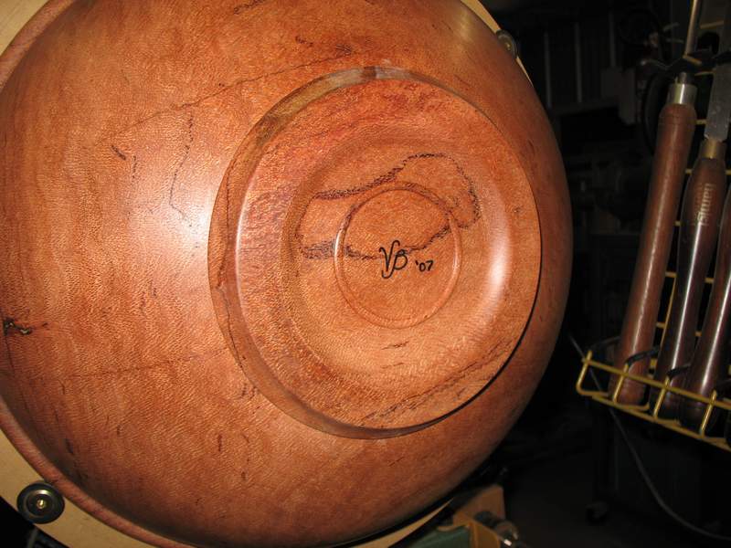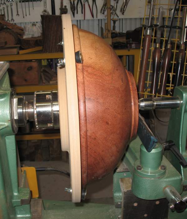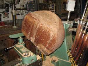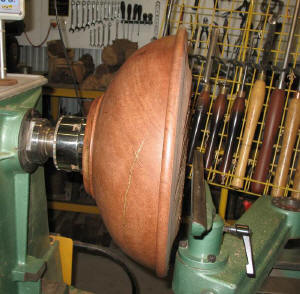 to do the turning! The following is a pictorial of the main stages in the creation of the bowl.