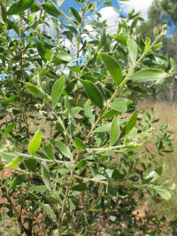This short-lived wattle grows to about 5 or 6 metres high with trunks to about 180mm diameter. I only know of one small patch of a.elacantha in the region growing on the roadside near Tieri, or at least it was until Ergon Energy flattened everything along the roadside and an over-zealous farmer obliterated what was left in a slash and burn clearing rampage along his fenceline! I'm hopeful there will be some regeneration but only time will tell! | |