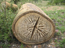 left shows how much shrinkage occurs in the pulpy heart of the tree in