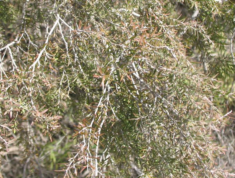 Black ti-tree is a common sight on the blacksoil plains where it is found lining the shallow creek