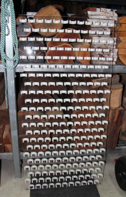 One of the criteria in my design was to include expandability and the idea was that another set of drawers could be added on top. While this idea still holds true, I will be making a stronger stand for it, possibly containing another 8 drawers, to cope with the weight of so many wooden eggs.To see a 'how to' on the making of the cabinet, follow this link to the Ubeaut Woodworkers Forum that I spend way too much time on!!! | |