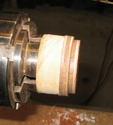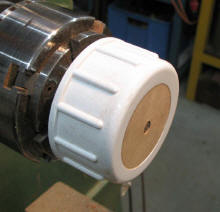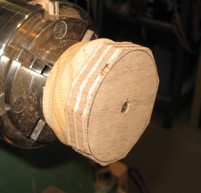 Mount the 2nd disk on the screw chuck the same way and shape it to fit snugly...... | |