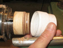 Screw the outer ring on and true up the inner diameters with some form of scraper - I use a Sorby hollower for this type of cut. | |