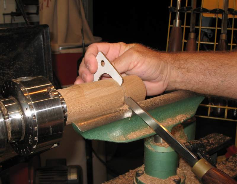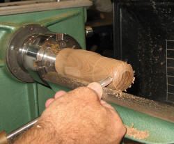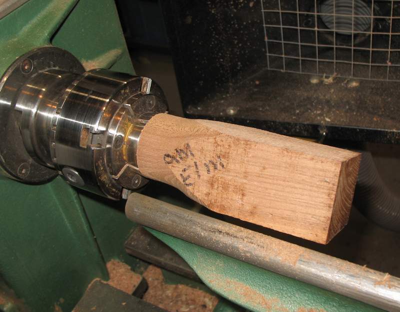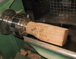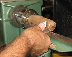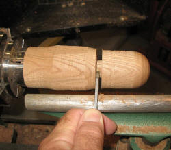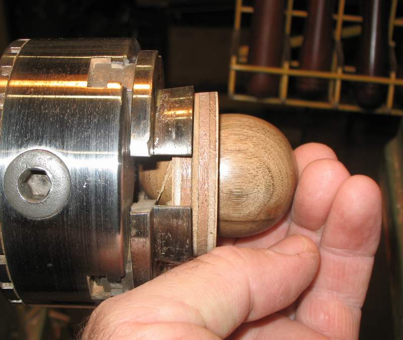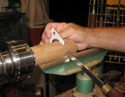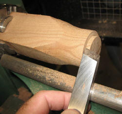 Use a skew chisel to cut a notch to suit the dovetails of your chucks jaws. | |