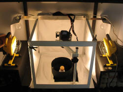 This is not so much a "How to" as it is a "How do I" photograph the eggs as I'm still not 100% happy with the results I'm getting with my current setup but I don't know what else I can do to improve them any further. If you have any tips or ideas, please leave me a note using the 'Feedback' page. The photos from egg #462 onwards are about as good as I can get them - except the reflection from the 2 halogen lamps - if I could get rid of that I'd be a very happy camper! | |