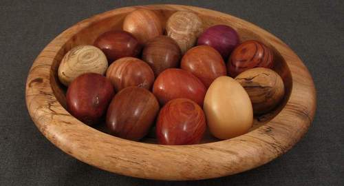 There is probably a hundred different ways to turn an egg and even my own methods change according to the timber I'm using and the required quality of the result. What follows is my preferred method - not necessarily the best or quickest method - just the way I do it to make eggs for my timber collection. | |