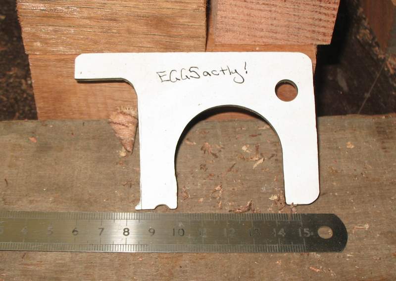 After turning about 30 or 40 eggs with no end in sight to the types of timber available, I thought it might be a good idea to have a gauge to help make sure the eggs would fit in the egg-chuck OK.