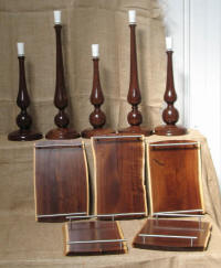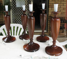 Gidgee lamps and serving trays - some of the trophies for the Twin Hills Rodeo which the Emerald Woodworkers group